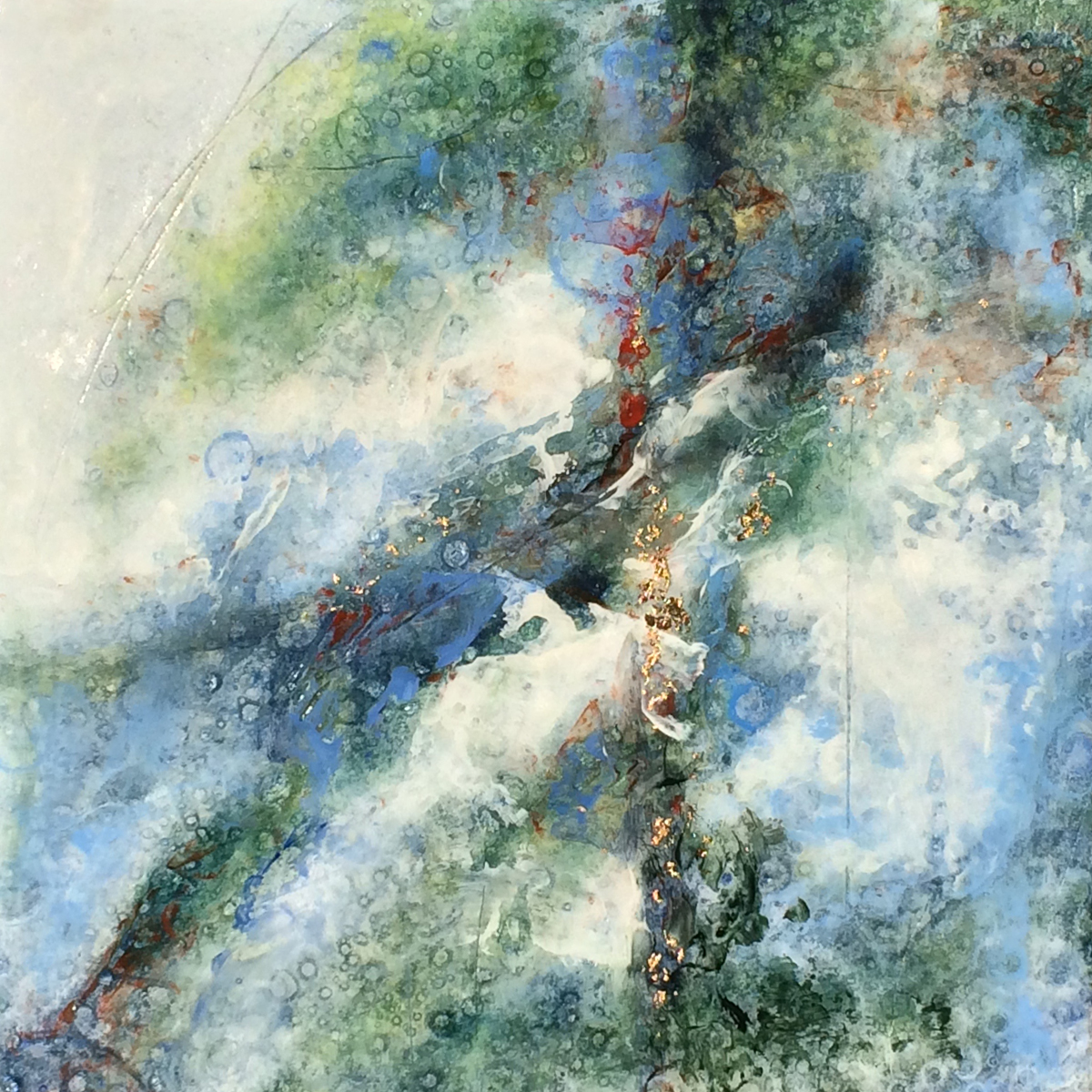 My abstract pieces have been a truly enjoyable diversion. They're just fun. Unlike the landscapes I paint (which are minutely planned out to the n'th detail before I ever start the actual painting) abstract paintings almost have a life of their own. I randomly apply texture to the canvas, and then I choose a color scheme based on current color trends. And honestly, where it goes from there is always a surprise. Each one of them is like raising a teenager -- you coax and help it on it's way but you can't work it too hard or you'll ruin the whole thing. And hopefully, they turn out great in the end. I find painting abstracts to be great therapy because the way you paint them is so different from the way I approach a landscapes.