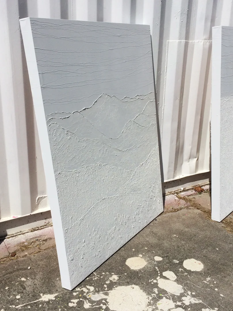 This year has been pretty incredible. It's been the year of "largest". The largest commission, then another commission beating that, and now this (below), which is the largest project yet. It's destined for a medical facility in Oklahoma City and it's an 80 square foot, four panel set (each 4' x 5'), The client chose the subject matter based on some of my favorite previous work, so I get to revisit a previous theme and re-interpret it in a fresh way. Right now, I'm working on applying texture, so the photos are rather monochromatic but have patience...color is coming soon.