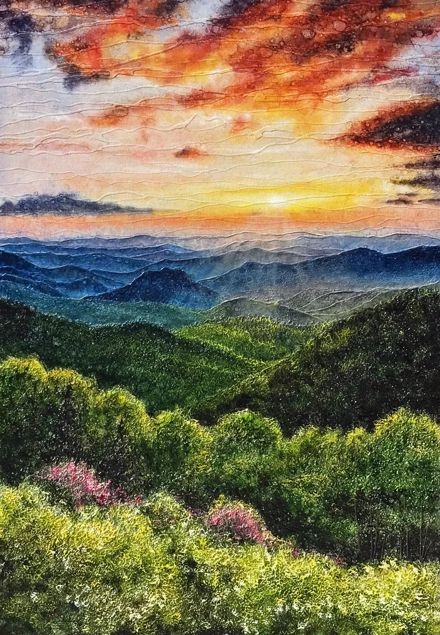 Every now and then, when the mood is right, Joy and I take a break from painting at our art studio and head up to the Blue Ridge Parkway (usually heading south from Asheville) and just explore, pulling the car over to gawk at the view when the view demands it. And when conditions are “just right”, we’ll pull out our dinner, a bottle of wine, and Pims (you have to have Pims) and enjoy the exquisite company of God, nature, wind, clouds and sun.