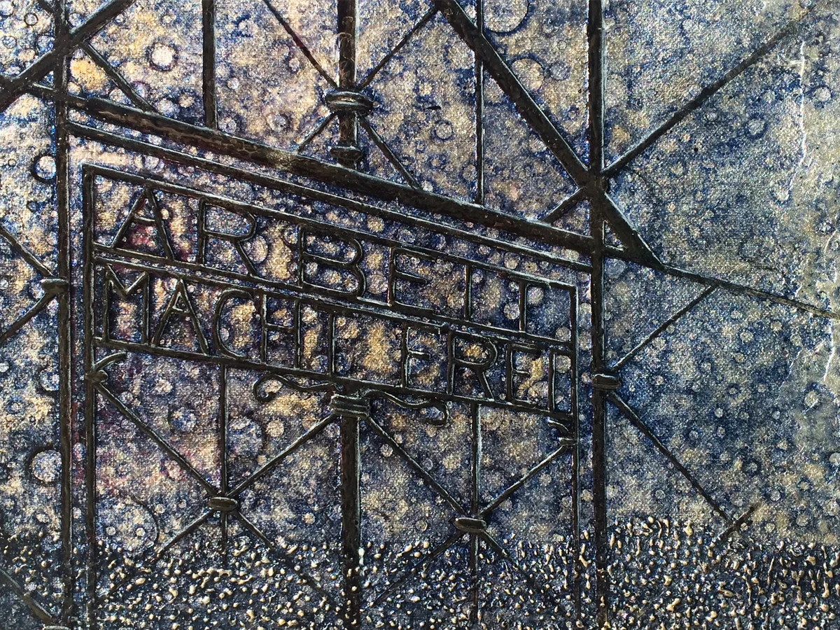 Visitors to Dachau are very quiet. It's a horrible and holy place. The weight of the evil is still there. You can still feel it. I think it will always be palpable. It should be. I left Dachau needing to express my own grief. This painting is that expression.