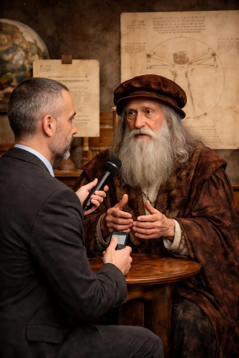 This is an imagined interview. Leonardo's responses are constructed from historical research, his own notebooks and documented writings, and a deep familiarity with his life and work. No direct quotes are presented as real.