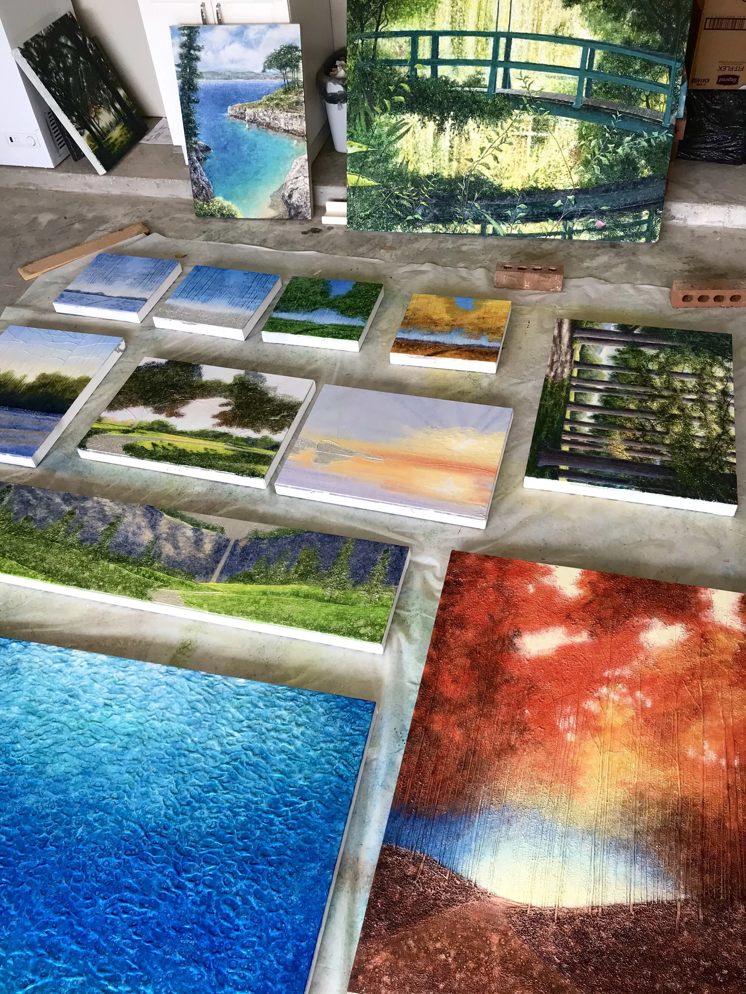 “Isolation artwork” is filling my floor. Keeping busy keeps me sane!