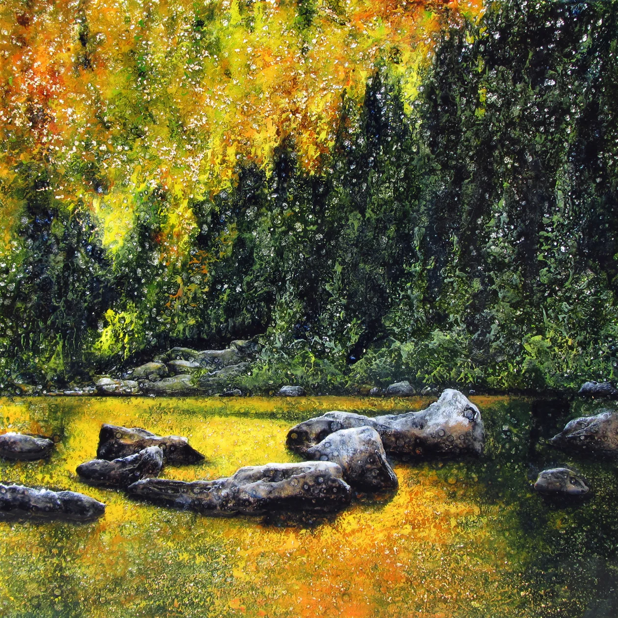 This piece, "Broad River in October" is so reminiscent of Autumn. In "constructing" this piece, I used more texture than I usually do, but that created very rich and dimensional results I'm very happy with.