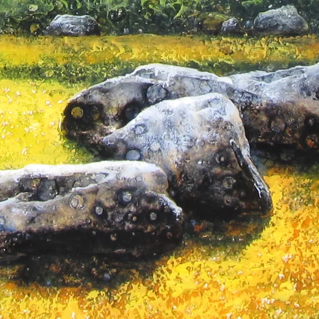 He asked that some of the rocks be removed from the right side and replace the foreground rocks with new moss-covered rocks. And he wanted autumn colors rather than summer greens. I love commissions! And I love it when a client feels the freedom to get involved (he actually spent a good deal of time hunting for the foreground rocks he wanted).