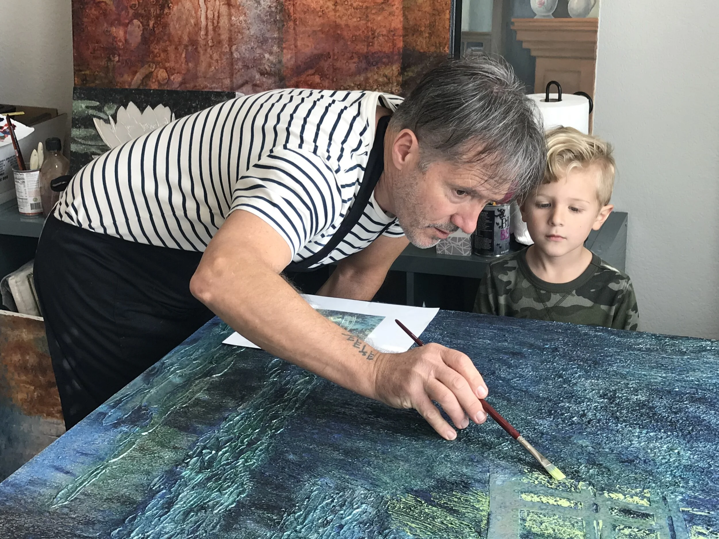 People visiting my River Arts District studio in Asheville, North Carolina were surprised when I told them where I was spending my winter. My studio hours are reduced this time of year and my awesome and capable assistant Brenna welcomes visitors for me every Friday, Saturday and Monday until mid-March when I arrive back in Asheville until next winter. “Dallas, Texas?” they’d exclaim. “Why?” Well, it’s not because of the natural beauty of the state. I feel sorry for it. It does have a raw and very simple beauty but honestly, let’s not argue about it. The second best thing about Texas is the BBQ and that’s it. The first best thing is that three out of our four kids live here, right next door to each other and we live life with family all around us (including eight of our ten grand children). Every day, painting gets pushed aside by running outside and hugging these kids as they scooter by the house.