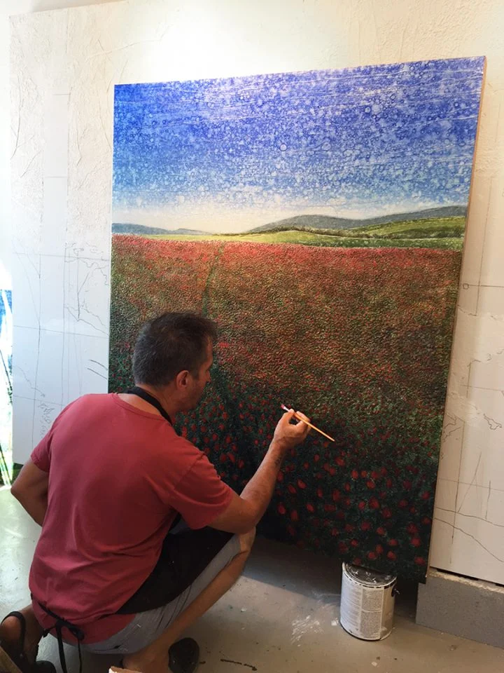 This one was just a bit challenging in that it features about 3000 tulips, first sculpted in modeling compound and then painted. Good thing I love my job. This one is also part of the Oklahoma City commission (painting 3 of 4).