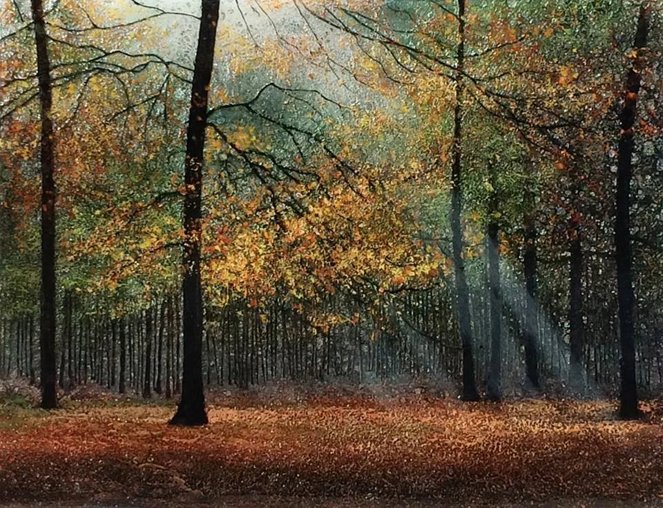 "Sacred Space" (18" x 24") Sometimes when I'm walking in the hills of western North Carolina, far from the hustle and bustle... just me, trees and God...I come across a space that feels like it's holy. Sorry if that sounds metaphysical. I don't know if it's the angle of the light or the placement of trees or what -- it just feels like a place where the veil between me and heaven is very thin. This painting depicts such a place and when I saw it, I had to paint it.