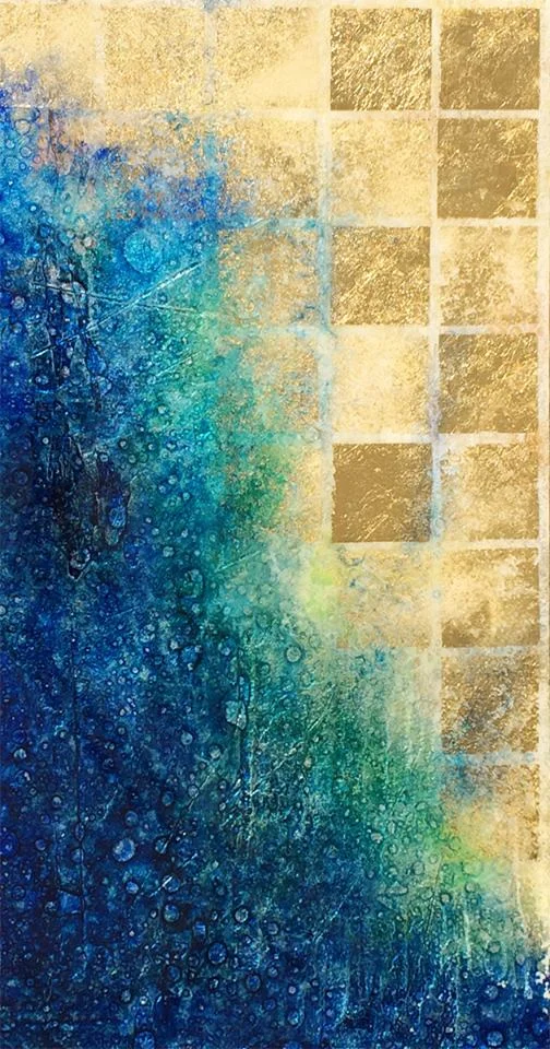I always know exactly what I want to paint. Generally, the texture underneath all the aluminum leaf and paint determines everything, except...except with abstracts. With abstracts, I never EVER know where it's going at all. When I try to figure it out ahead of time, I ruin the painting. Been there, done that. Abstracts are so different, and an really therapeutic exercise because I CAN NOT plan it out at all...it comes together as it comes together. They really literally have their own voice (and you need to know the secret artist password to hear the voice). This painting makes me happy. Every time I look at it I see something different. I like it when that happens.