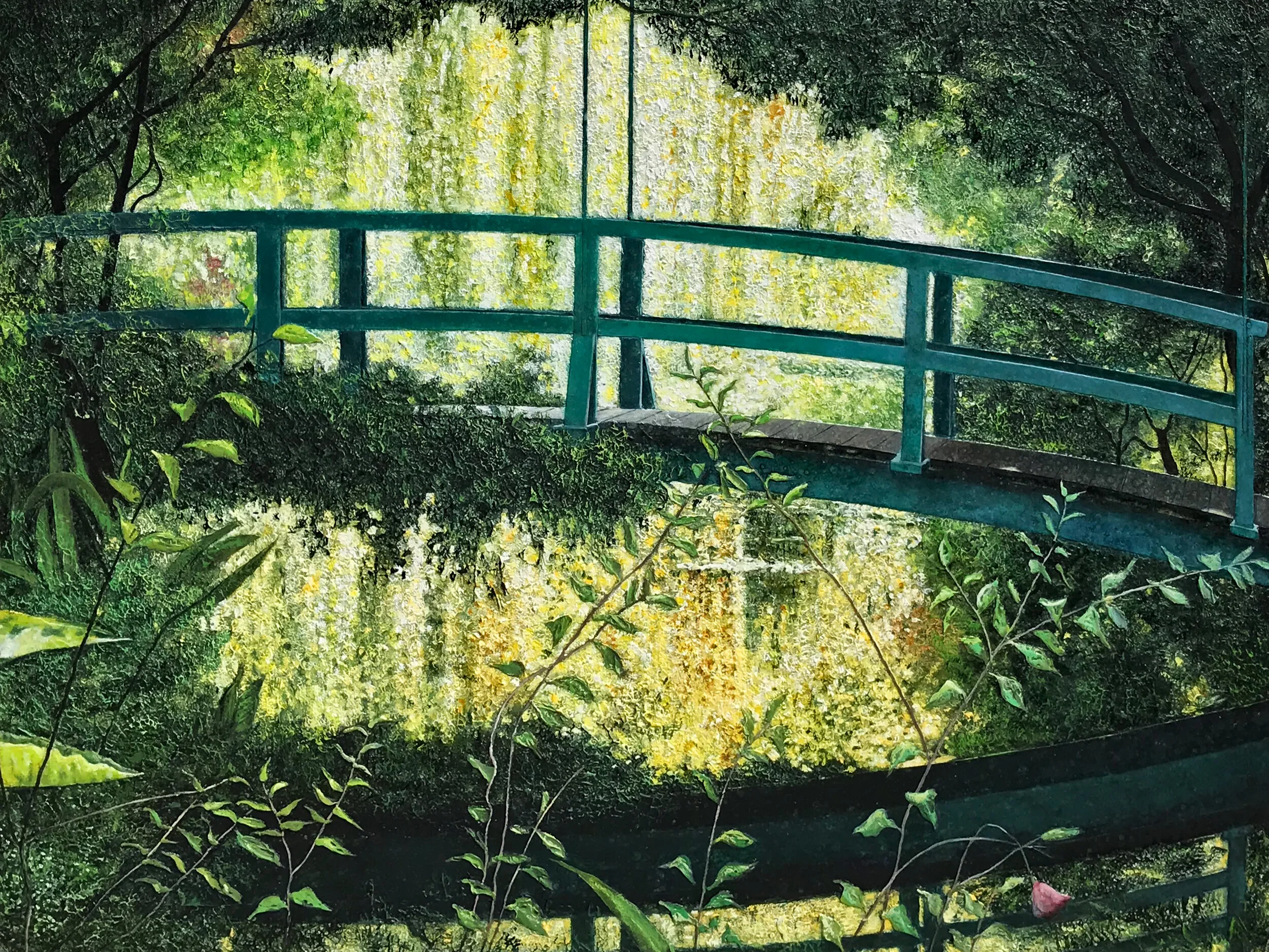 That said, there are two paintings I’ve done that I will be heartbroken when they sell. One is my largest piece so far (a 6’ x 8’ waterfall that took 13 months to complete) and the other is a bridge at Giverny (Claude Monet’s home and garden). I’d kind of rather neither of them sold, but…Joy will hit me if I don’t have a price tag on them so…they’re for sale as “premium” pieces (meaning I’ll never discount them).
