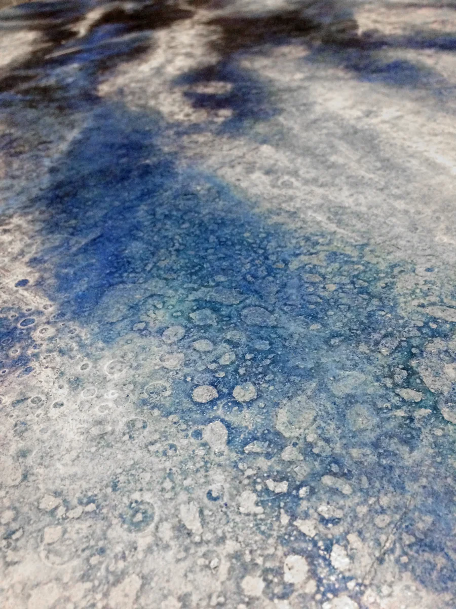 That's when Joy stepped to the back of my studio and took a look at it. "Oh, that's really bad," she whispered. (She's honest like that.) And I said I was going to have to start all over. Then she suggested just wiping off all the paint I had just applied that day and then taking a look at it the next day with fresh eyes. So I did, and something really weird happened. When I wiped off the fresh paint, a little paint film still stuck to the rest of the piece; a fog of blues, greens and whites. Hmmmm. Interesting. That slight film I was unable to remove completely softened the whole thing and brought everything together.
