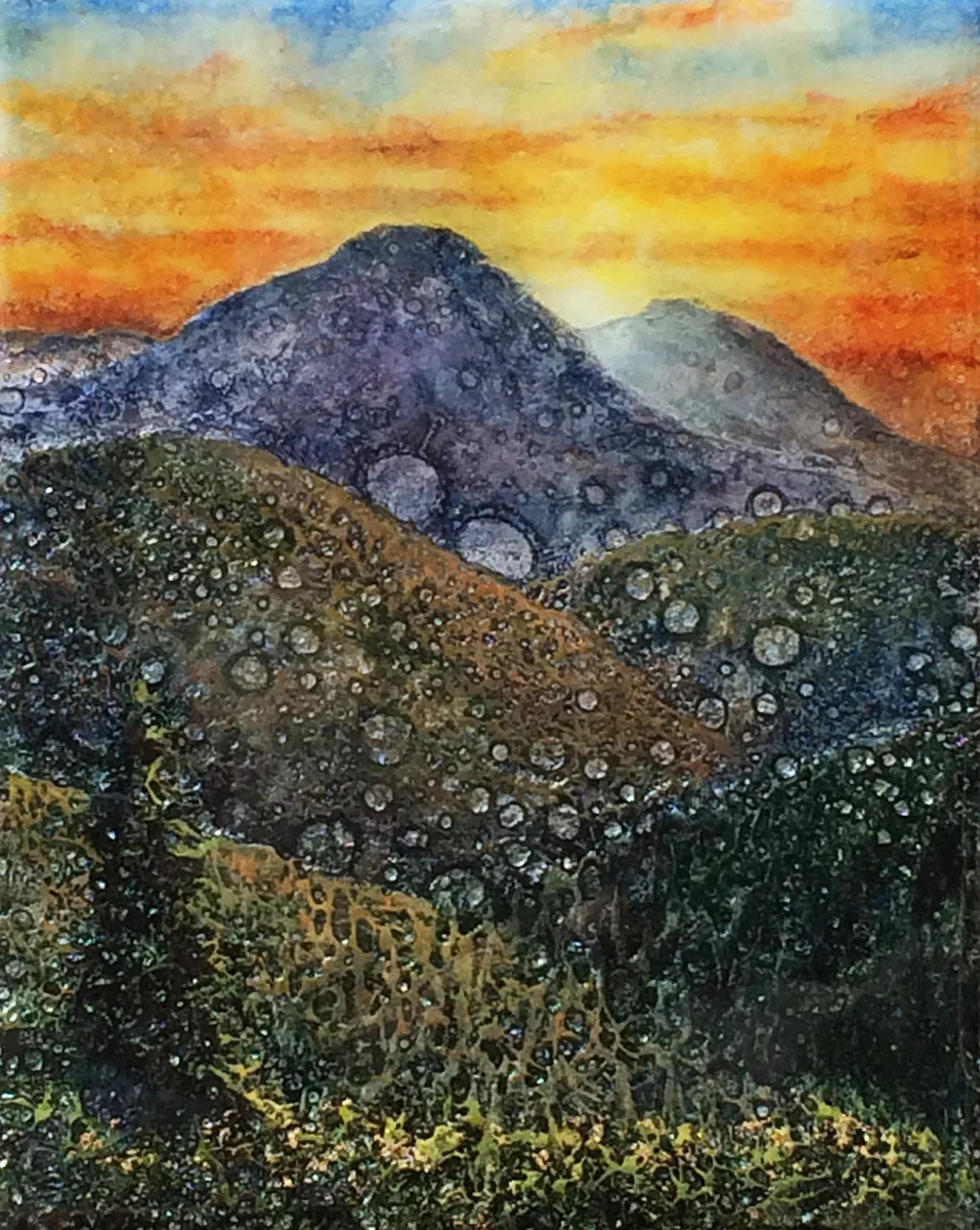 This piece is a small one (8" x 10"). It's minuscule but it glows. I wanted to capture the few seconds of light just moments before the sun slipped behind the mountains. In that moment, magic happened. What an amazing idea: a sunset. What a truly awesome way to say good night.