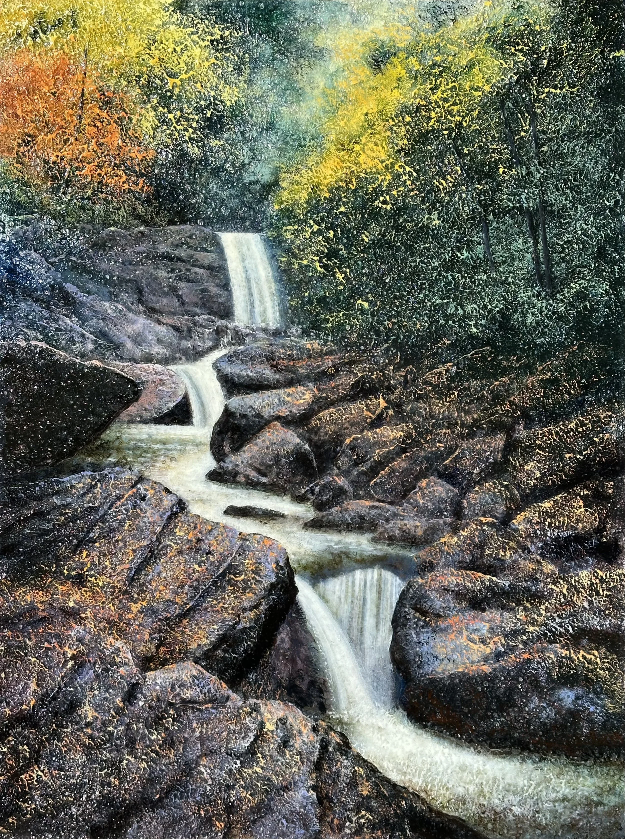 My goal with each landscape oil painting is to depict a "sacred space", a very unique geographical place (real or imagined) that would elicit a sense of quiet awe or reverence. I love those spaces. I don't think every place is like that. But I have been walking though the woods and felt it: the hairs on the back of your neck sort of feeling that tells you "this place is special", and I can't help but to pause and take it in.